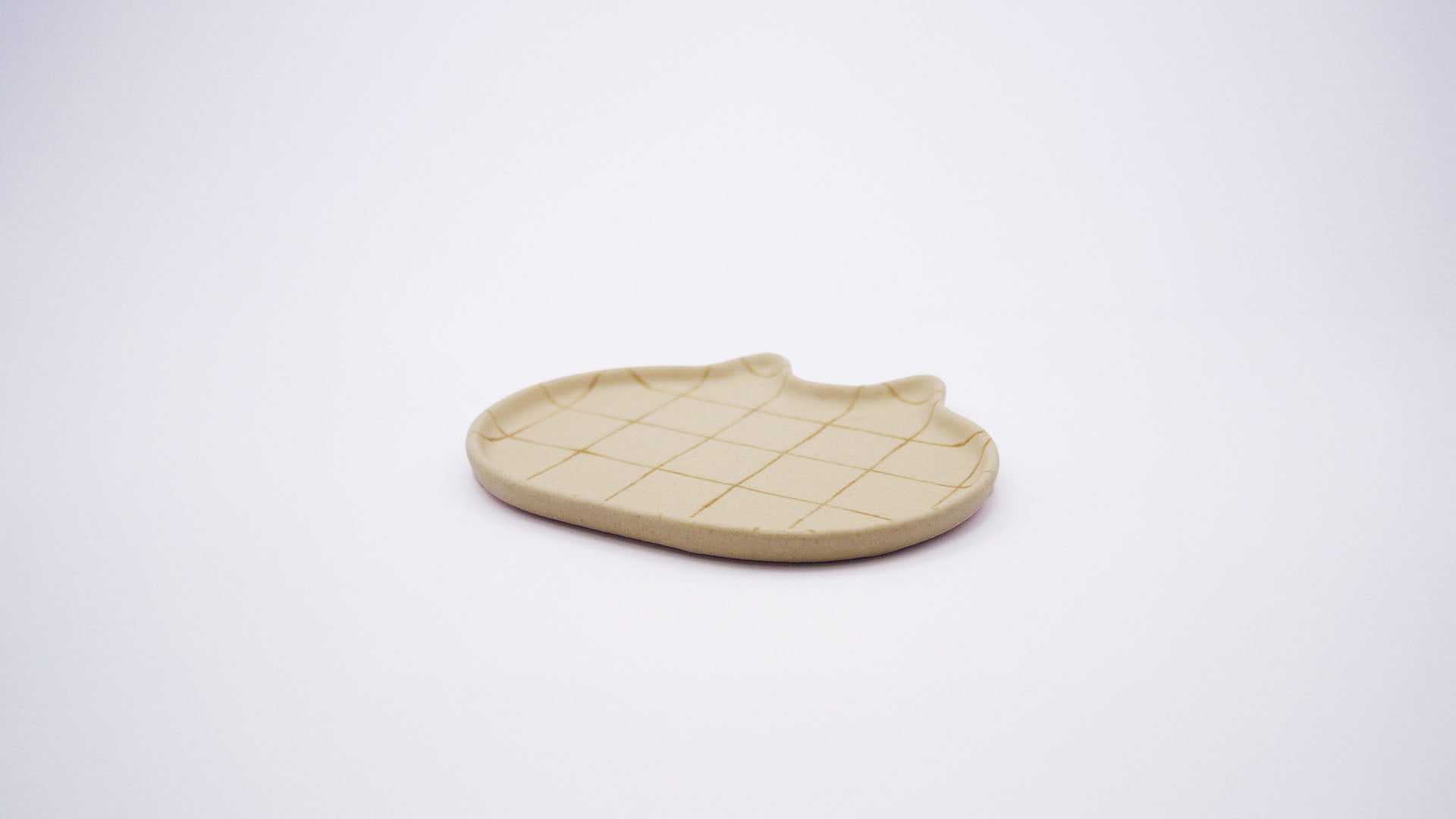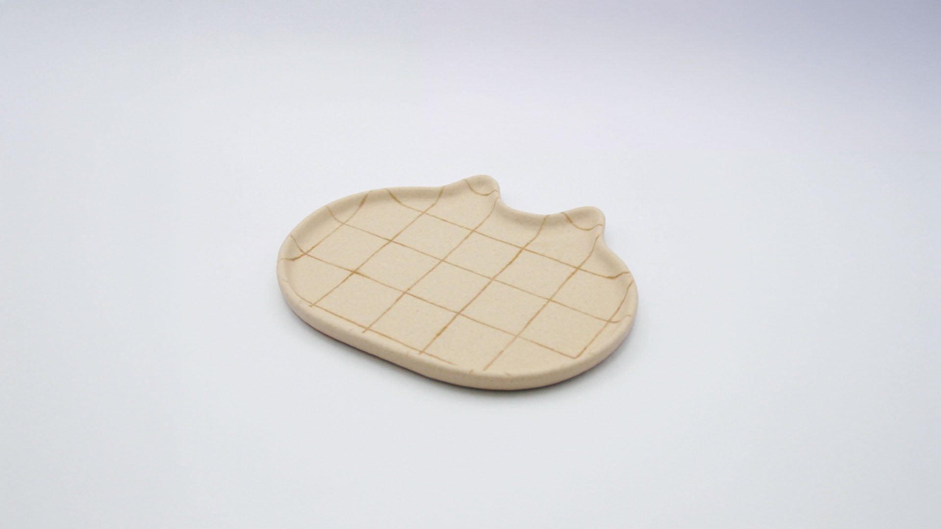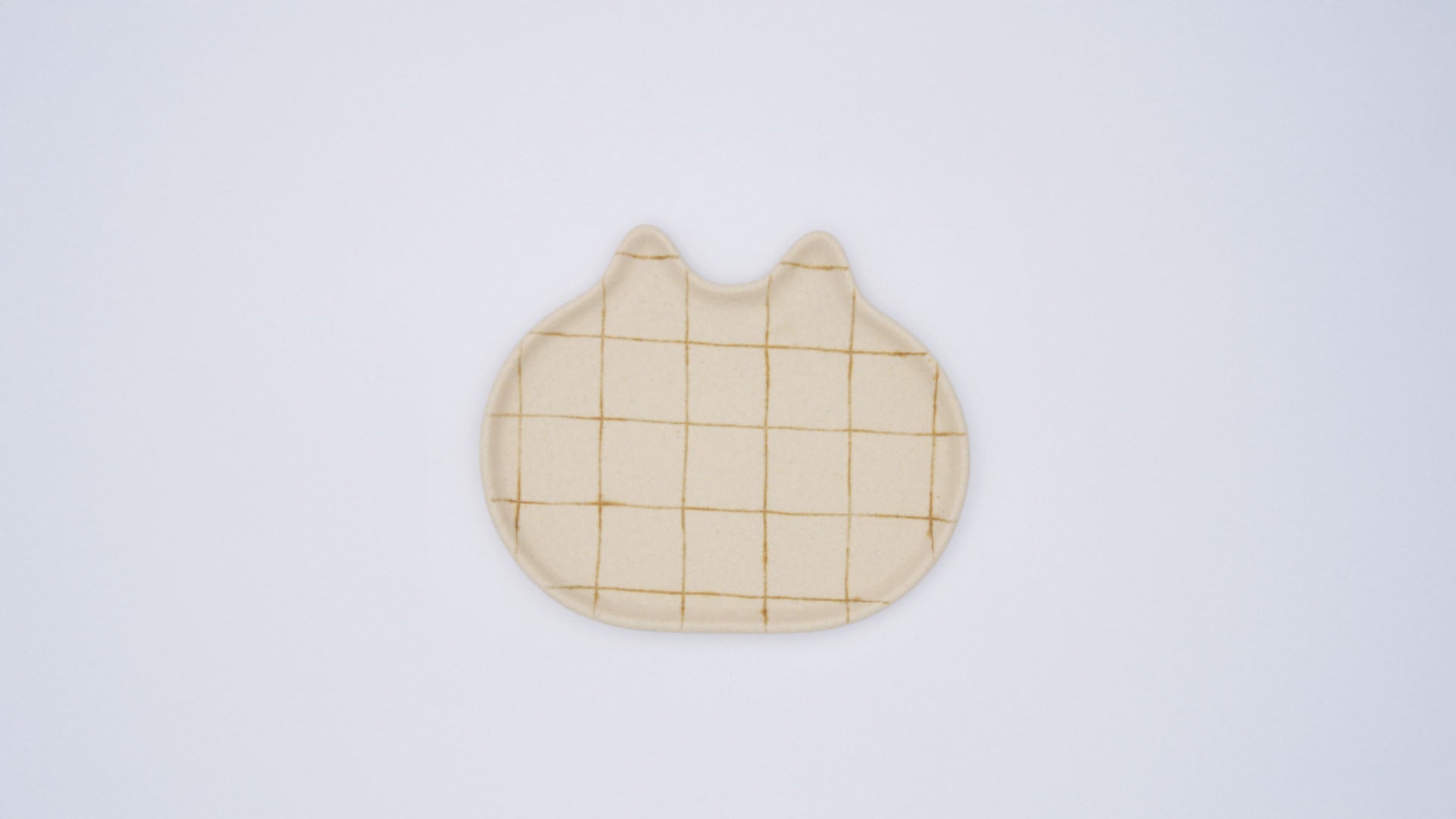 魅力的な基盤模様が施されている愛らしい猫の顔型デザインが特徴の信楽焼プレート小。和洋どちらのスタイルにもマッチするので、日々生活の中で気軽にお使いいただけます。