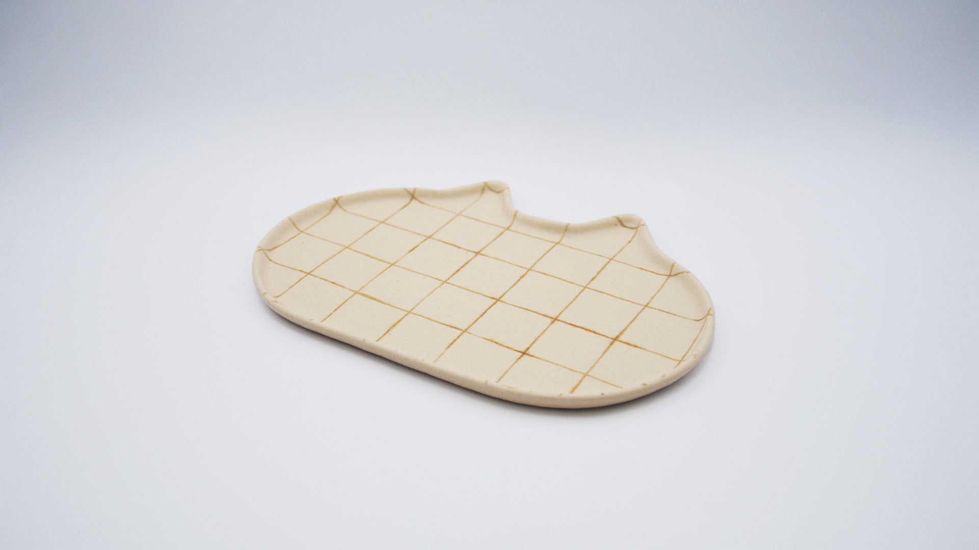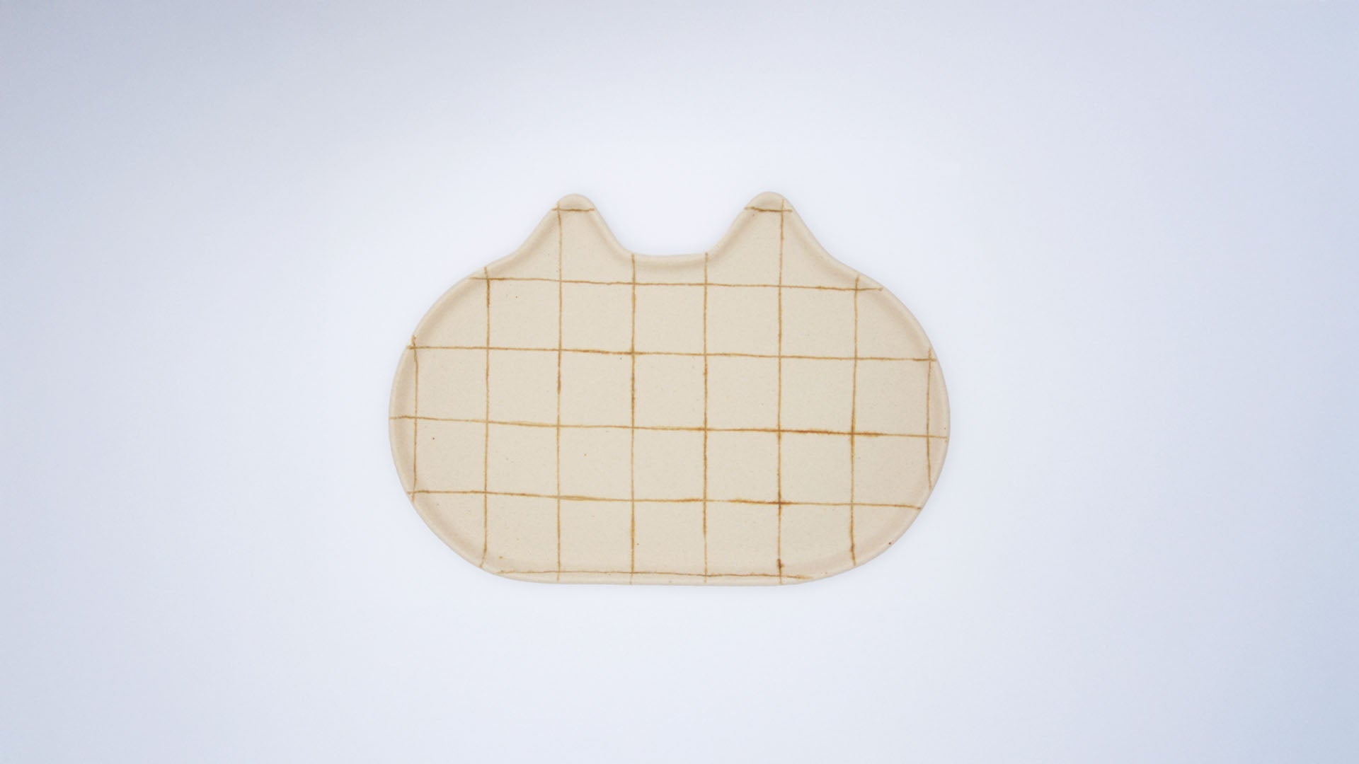 魅力的な基盤模様が施されている愛らしい猫の顔型デザインが特徴の信楽焼プレート大。和洋どちらのスタイルにもマッチするので、日々生活の中で気軽にお使いいただけます。