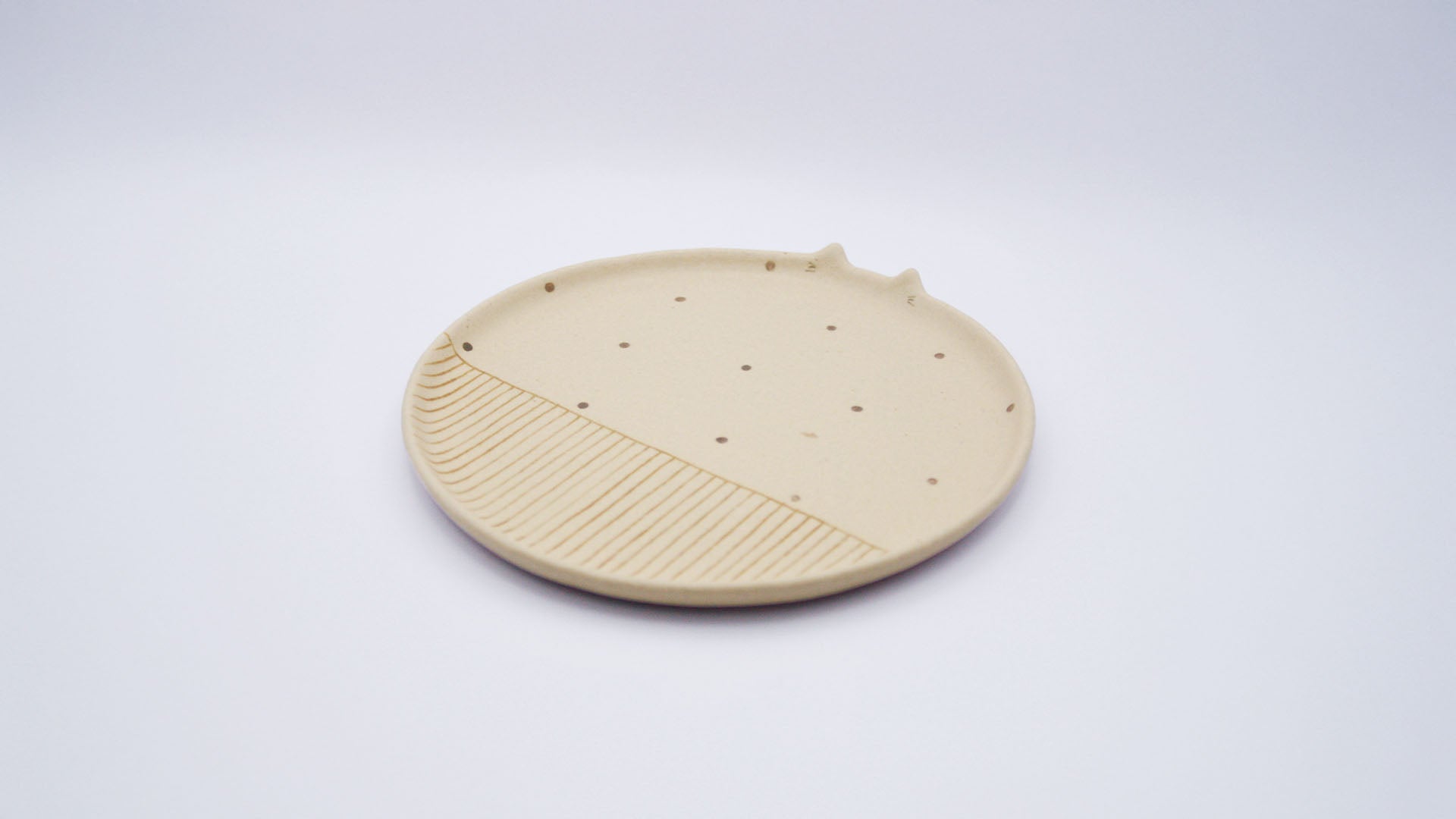 立体的な猫の耳が特徴の信楽焼で出来たプレート大。見た目の可愛らしさだけでなく、デザートにはもちろん、アクセサリートレイとしてもお使いいただける多用途なアイテムです。