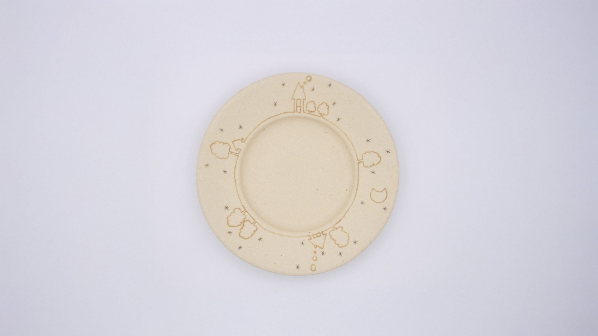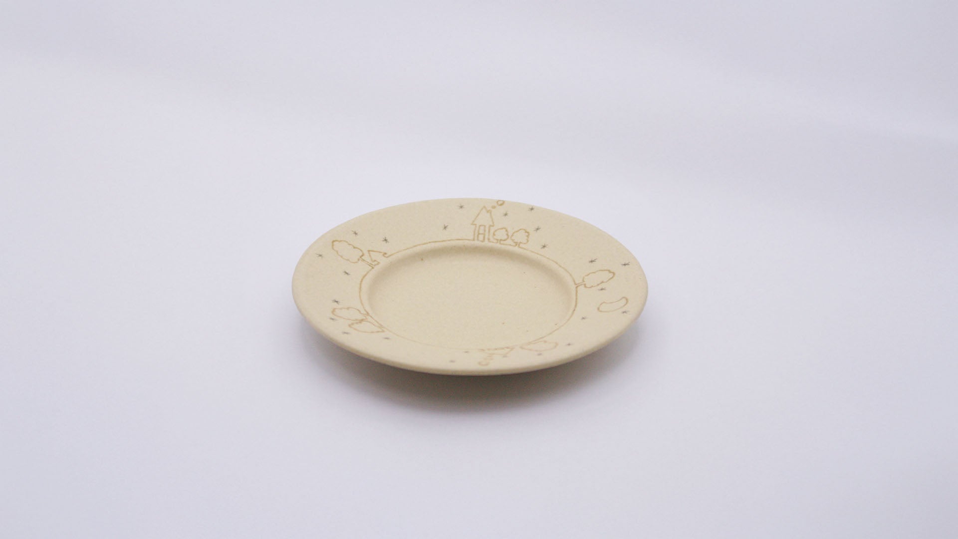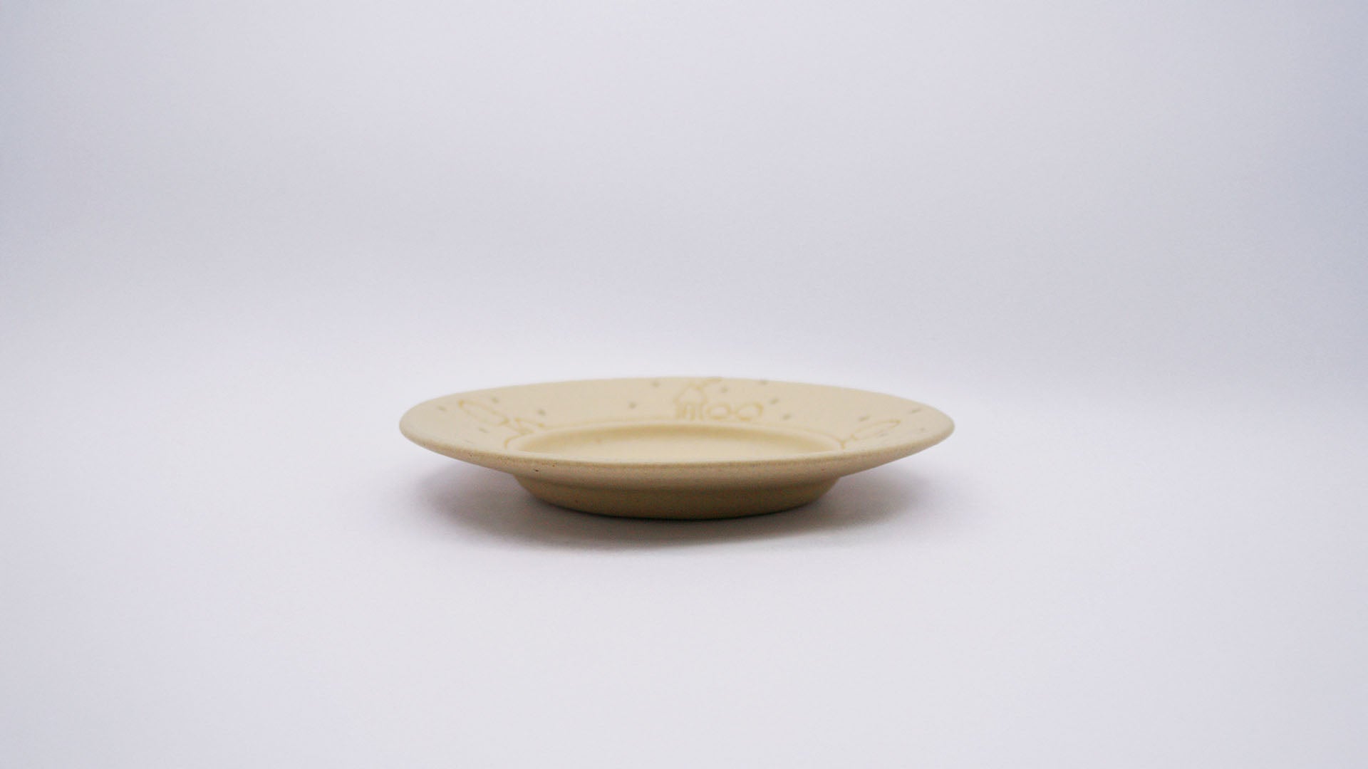 シンプルながらも愛らしさのあるデザインが特徴の信楽焼でできたお皿。マグカップとセットで使用することで、コースター皿としても機能します。