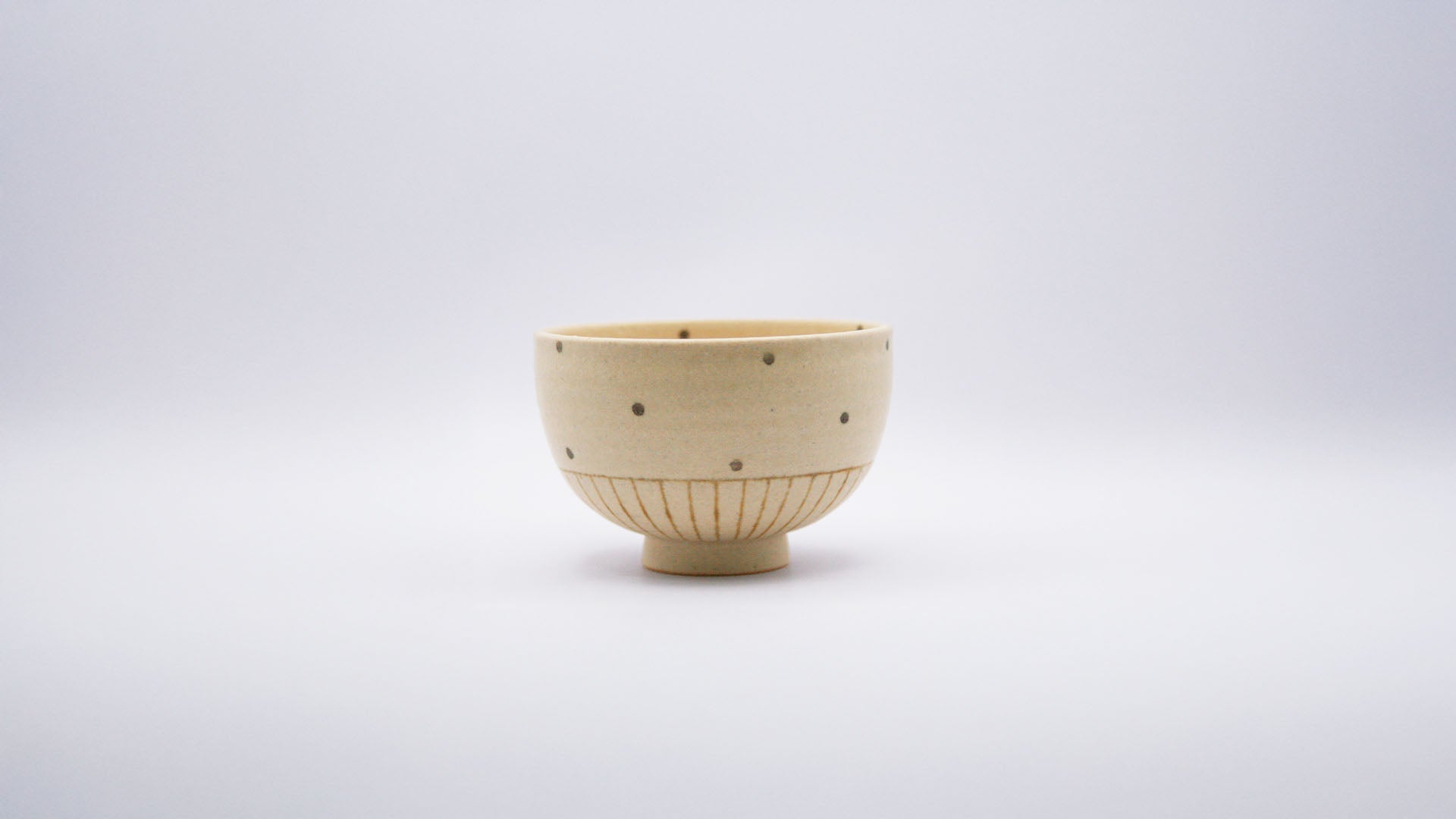 特徴的なドット柄のお茶碗は、手作業で一つ一つ施されており、温かみのある自然なデザインが魅力です。手に馴染むほどよいサイズ感で日常使いにも最適です。