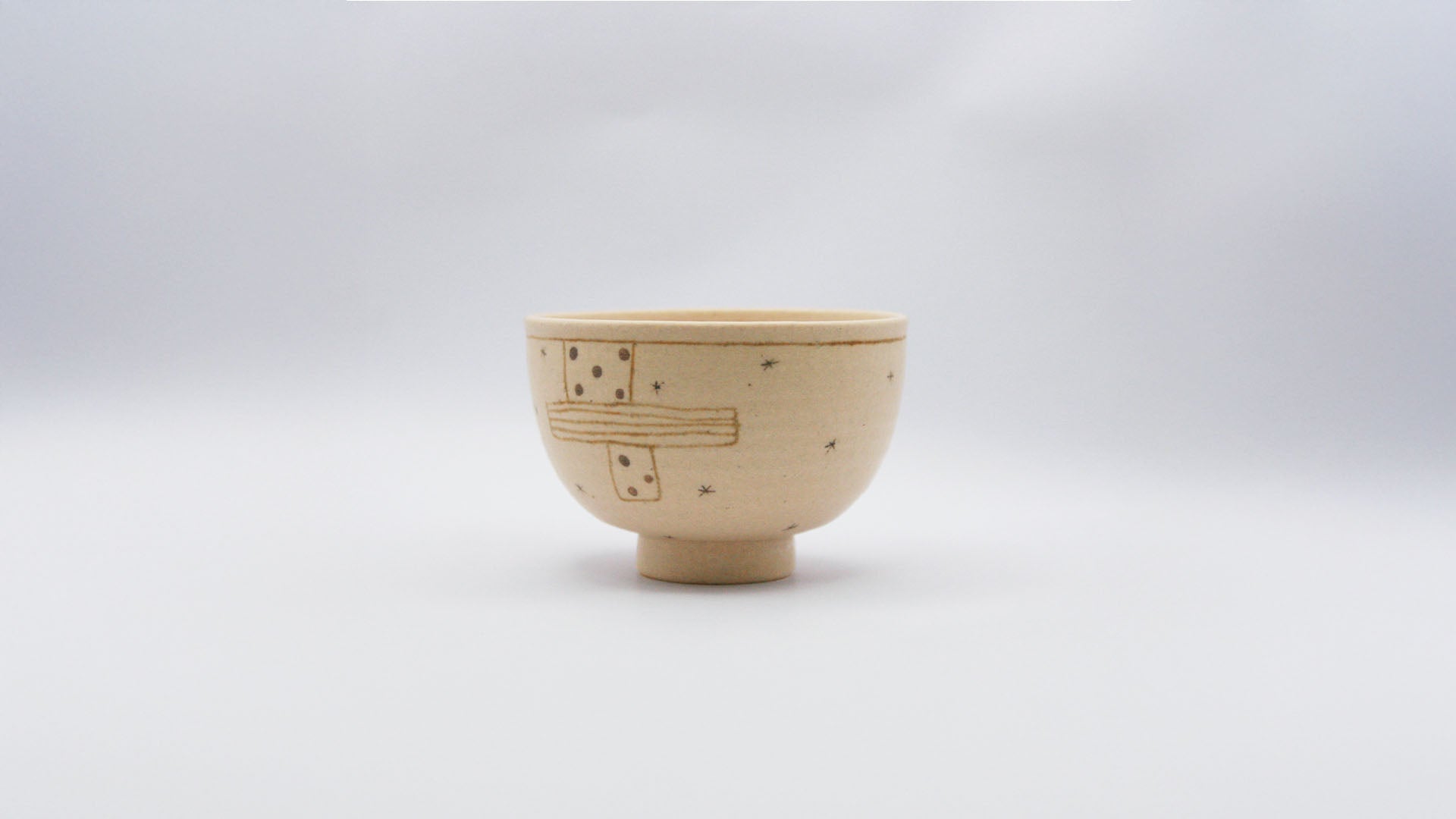 特徴的な星窓が描かれているドット柄のお茶碗は、手作業で一つ一つ施されており、温かみのある自然なデザインが魅力です。手に馴染むほどよいサイズ感で日常使いにも最適です。
