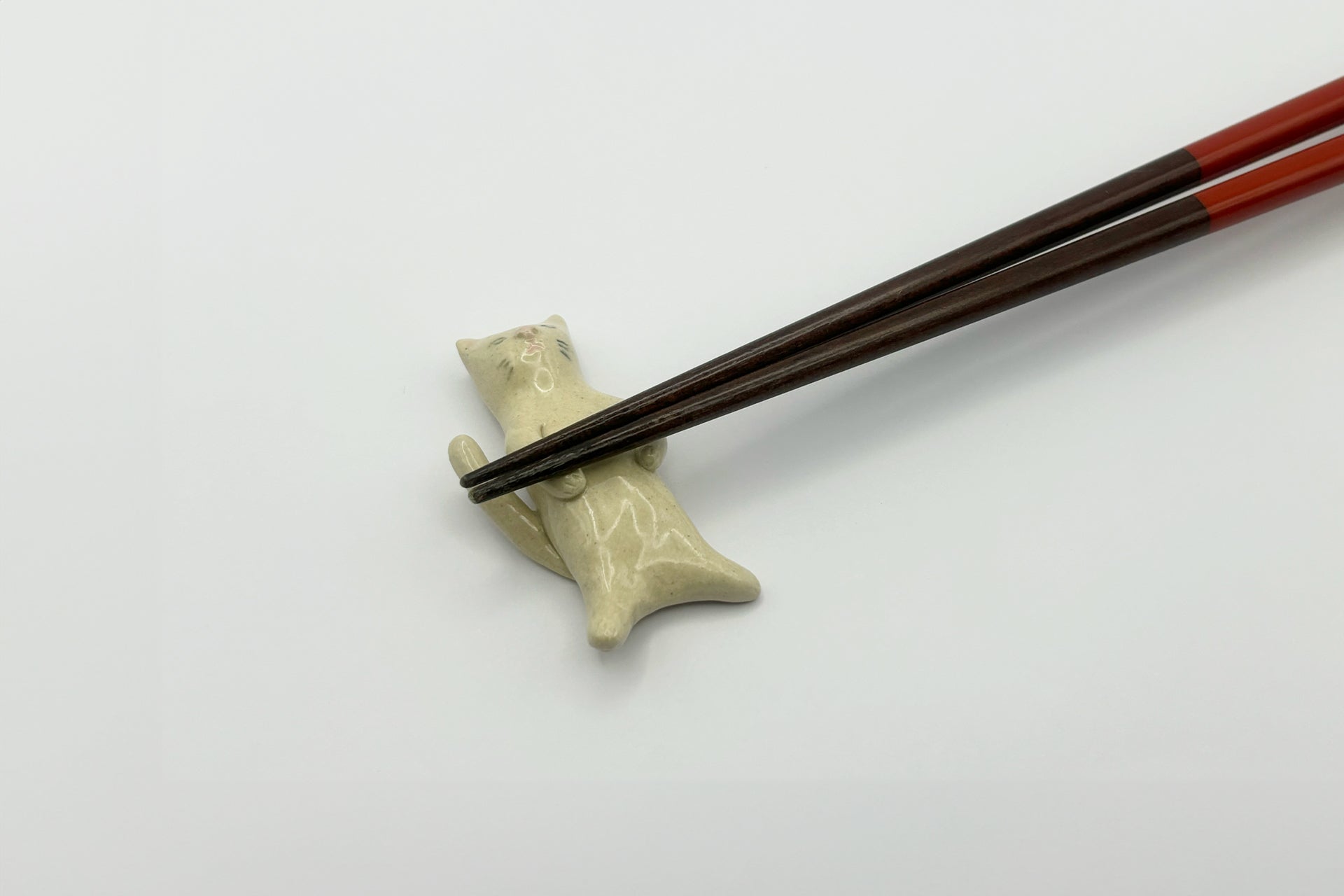 猫好きさんのための、箸置き。にゃんともかわいい猫がお腹で箸をしっかりと支えて、食卓にほっこりとした癒しをもたらします。