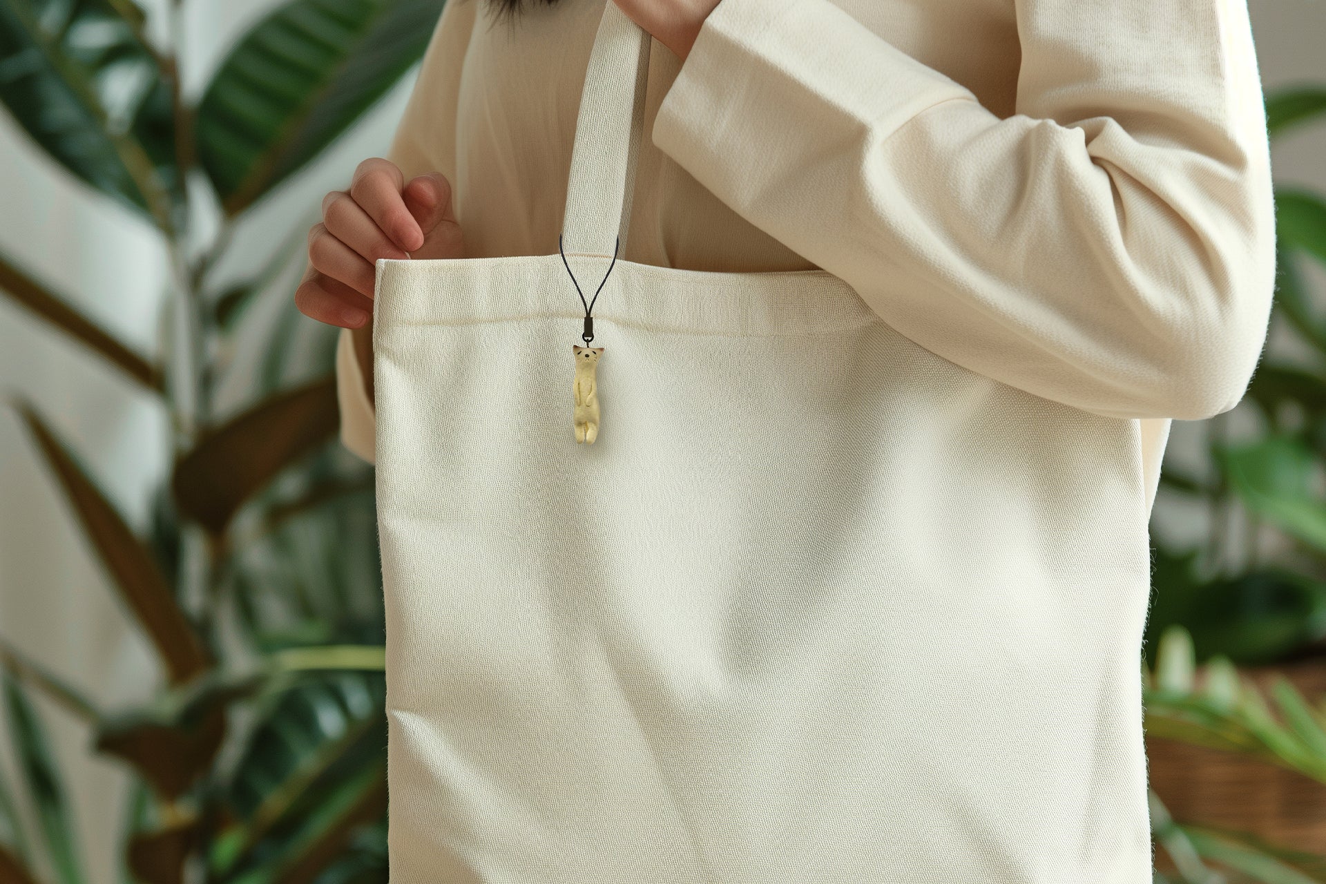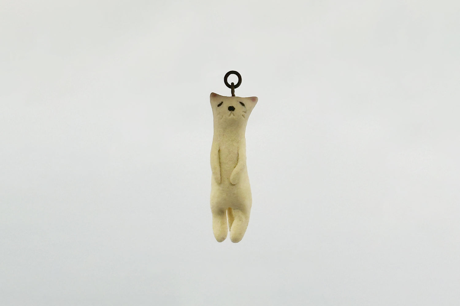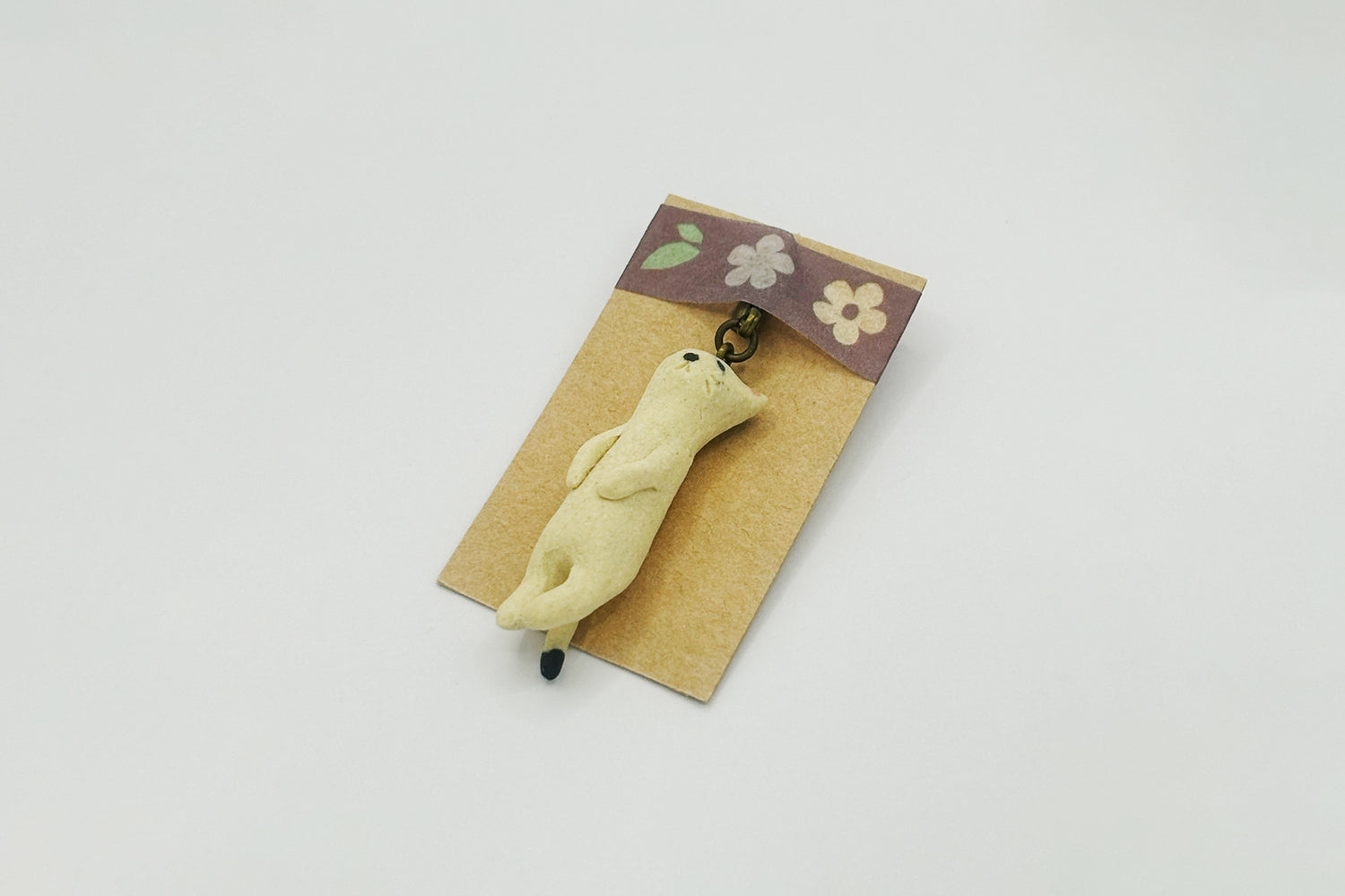 信楽焼の温もりある質感が特徴の猫のチャーム。一つひとつ手作りのため、それぞれ異なる表情に特別感があり、猫への愛をさりげなくアピールできます。