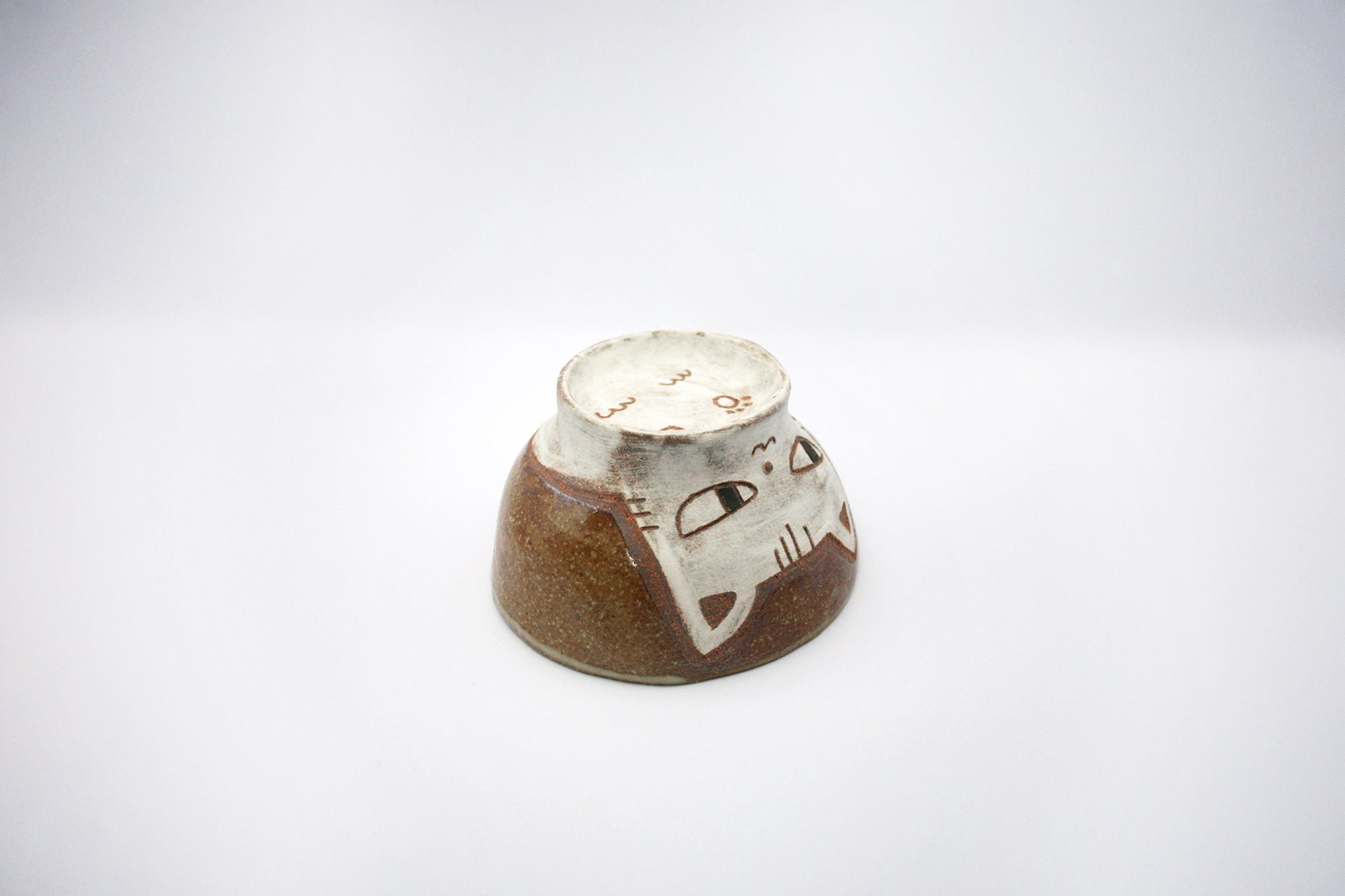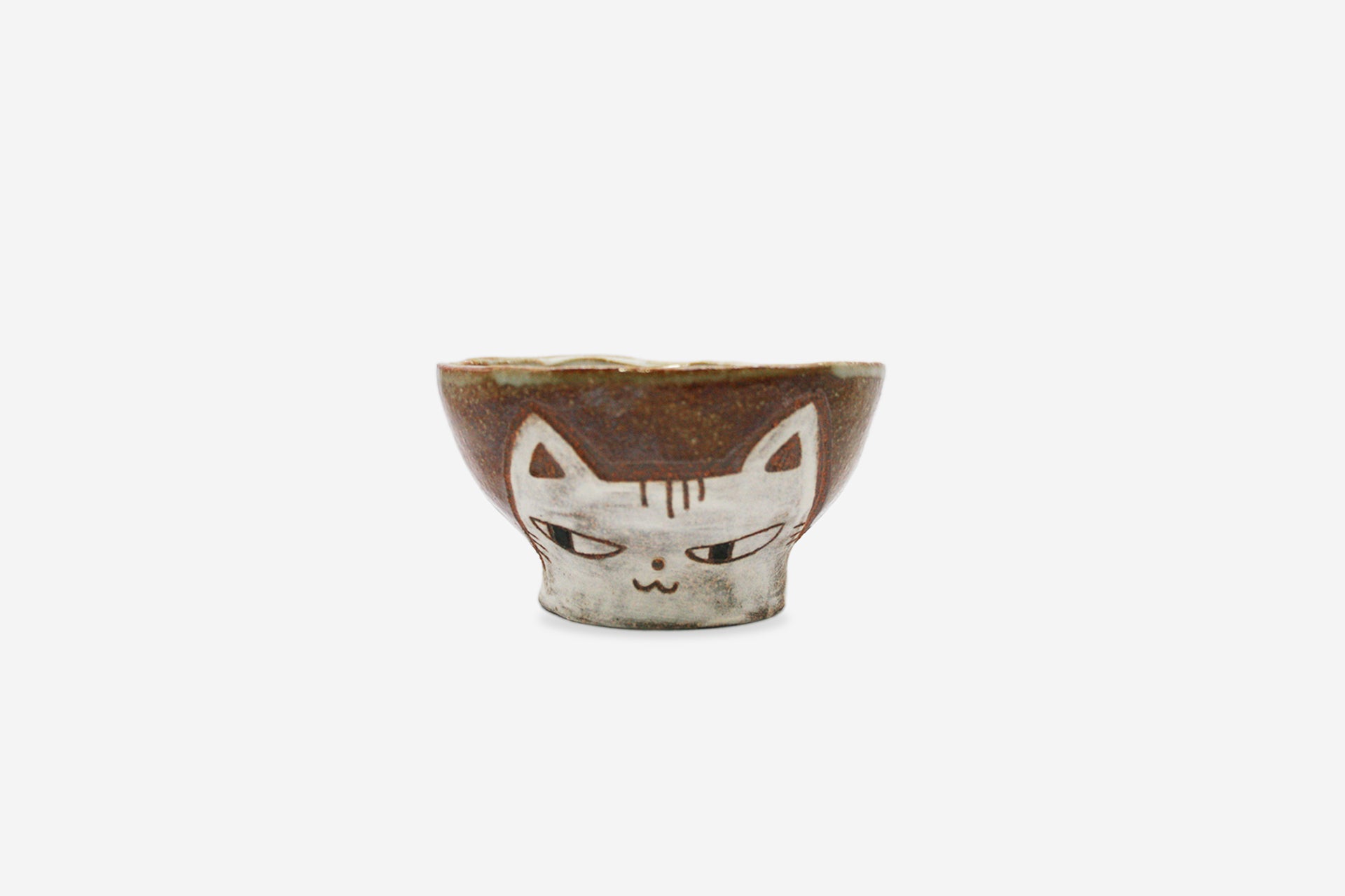 気高くもどこかミステリアスな白猫が、チャーミングな視線を投げかけるお茶碗大。ユニークなイラストが、カップの底にわたって丁寧に描かれています。